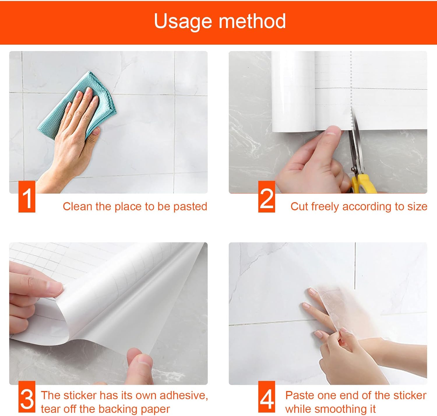 ✅ Installation method: 1. Clean and dry the surface with mild soap and water. Make sure that the wall is dry, clean, and smooth, and there should be no dust, oil, or water on the surface (otherwise it will not stick to the wall); 2. Use directly or cut out the size you want; 3. Use a rag or card to remove any bubbles (Some bubbles will not affect the use).